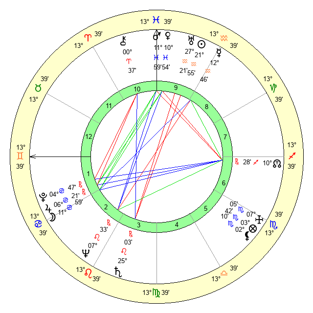 | Mars | 11 Pisces 59 | 18 Cancer 0 | 1 Gemini 38 |