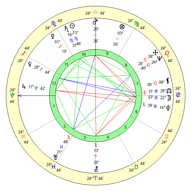 | Saturn | 17 Scorpio 6 | 25 Pisces 27 | 26 Scorpio 14 |