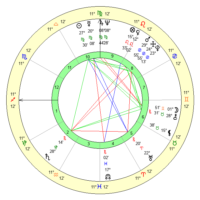 | Moon | 1 Gemini 51 | 14 Virgo 58 | 24 Libra 48 |