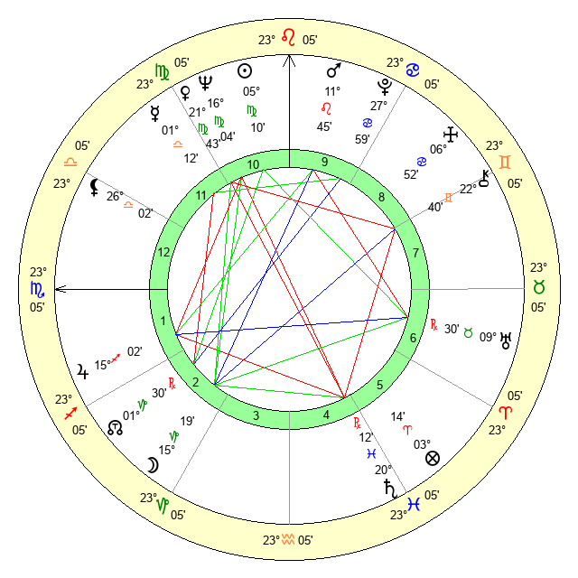 | Sun | 5 Virgo 11 | 5 Virgo 38 | 3 Sagittarius 16 |