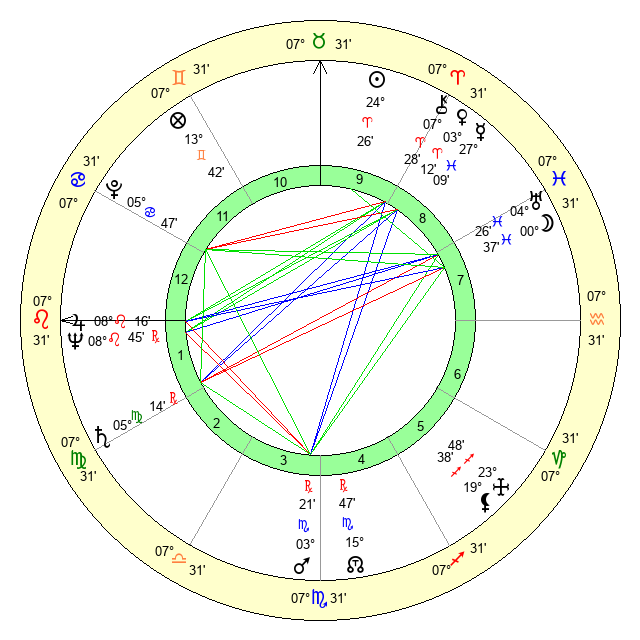 | Sun | 24 Aries 26 | 25 Aries 0 | 5 Leo 16 |
