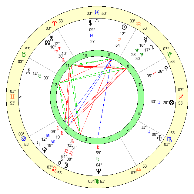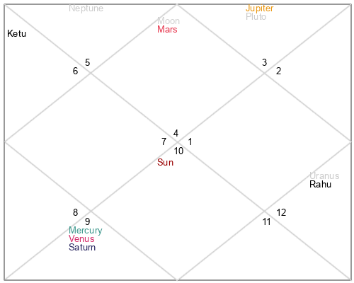 | Neptune | 4 Virgo 59 | 28 Pisces 1 | 3 Virgo 0 |