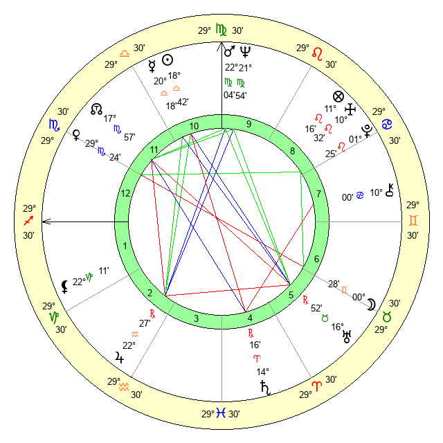 | Mars | 22 Virgo 4 | 13 Scorpio 55 | 16 Scorpio 39 |