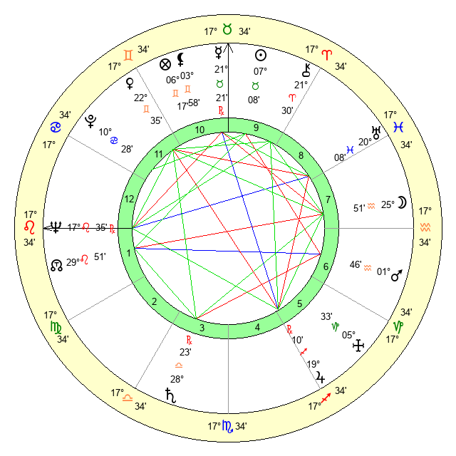 | Neptune | 17 Leo 35 | 0 Aries 59 | 19 Leo 52 |
