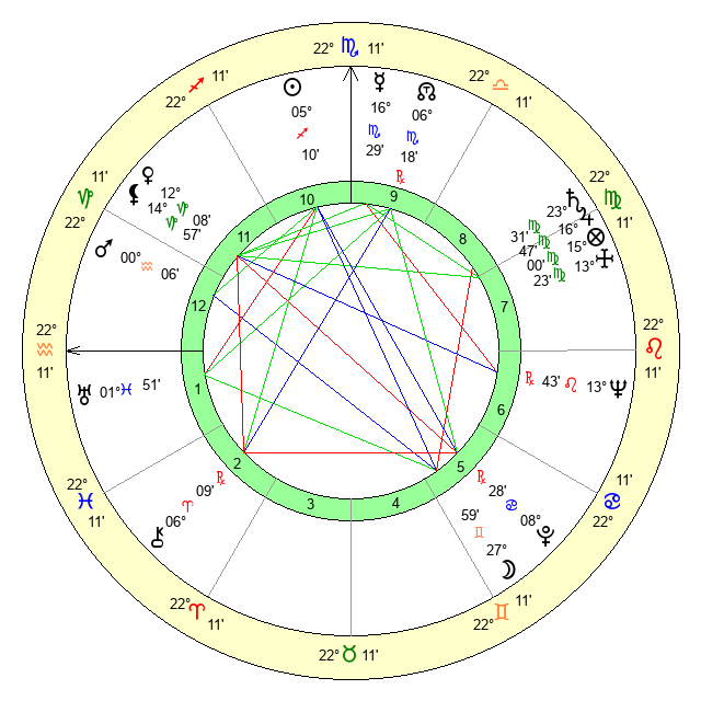 | Saturn | 24 Virgo 12 | 25 Pisces 3 | 22 Virgo 10 |