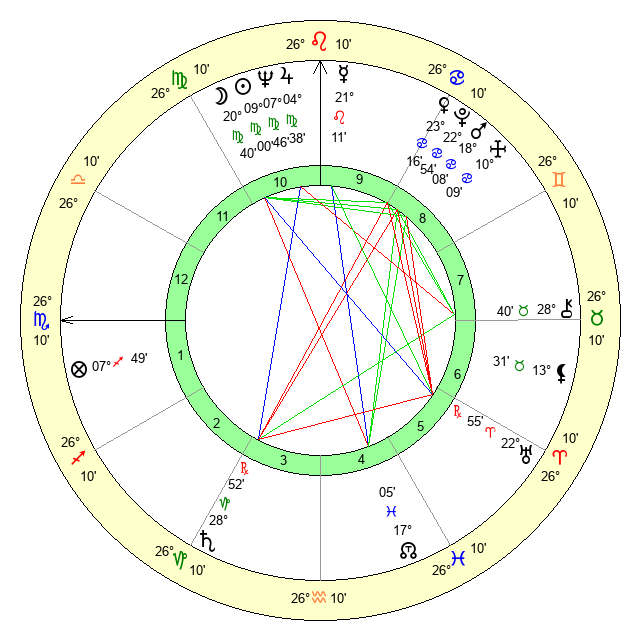 | Jupiter | 4 Virgo 27 | 18 Cancer 0 | 21 Virgo 6 |