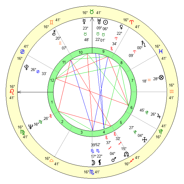 | Moon | 17 Scorpio 35 | 21 Aries 2 | 2 Aquarius 33 |