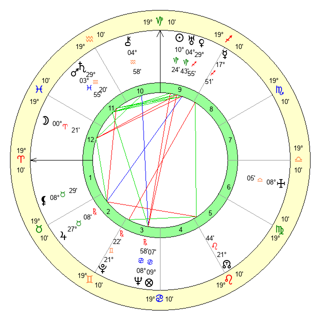 | Mars | 3 Pisces 55 | 1 Leo 41 | 1 Gemini 24 |