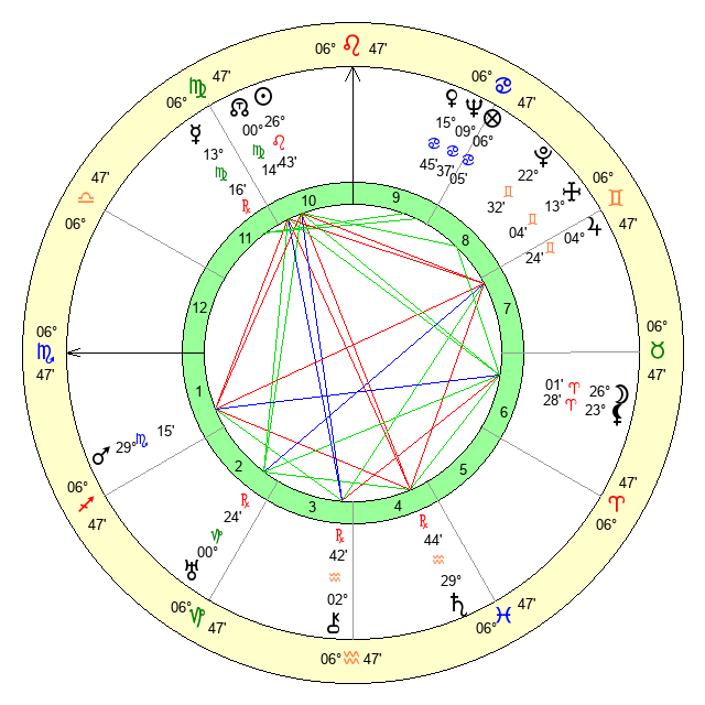 | Sun | 26 Leo 44 | 27 Leo 41 | 25 Sagittarius 53 |