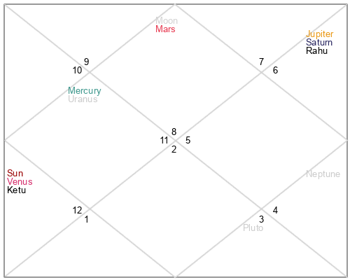 | Rahu | 9 Libra 33 | 27 Pisces 22 | 4 Libra 6 |