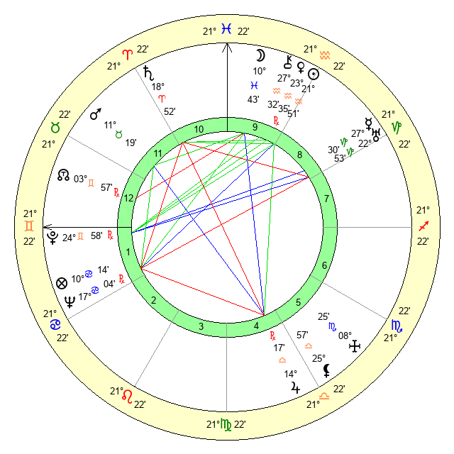 | Sun | 21 Aquarius 52 | 22 Aquarius 58 | 14 Gemini 51 |