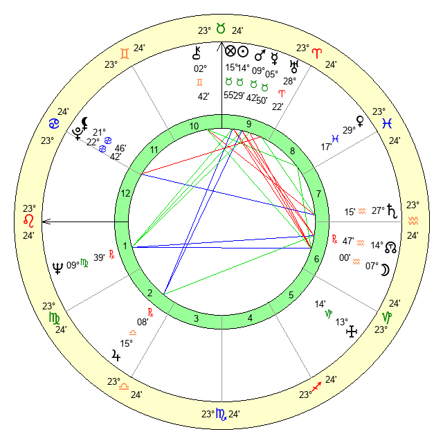 | Mars | 9 Taurus 42 | 7 Leo 47 | 13 Cancer 13 |