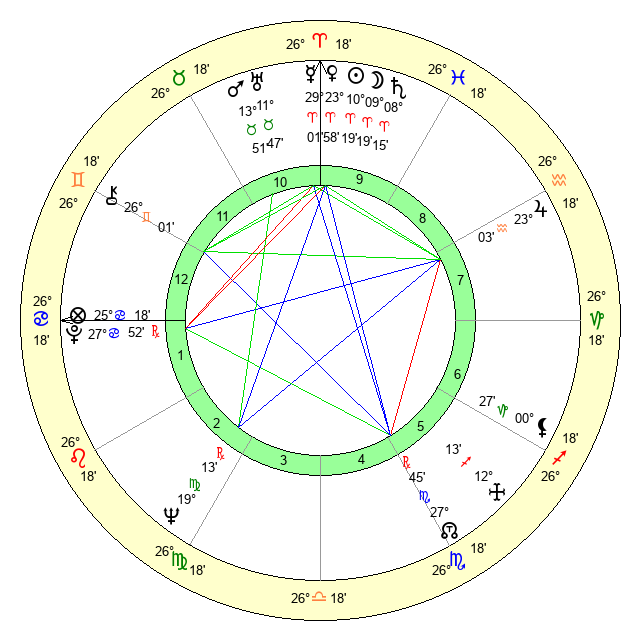 | Sun | 10 Aries 19 | 11 Aries 14 | 4 Cancer 24 |