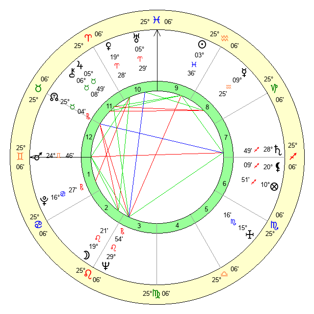 | Sun | 3 Pisces 36 | 4 Pisces 19 | 7 Gemini 49 |
