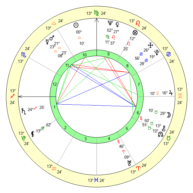 | Neptune | 2 Virgo 12 | 0 Aries 44 | 3 Virgo 27 |