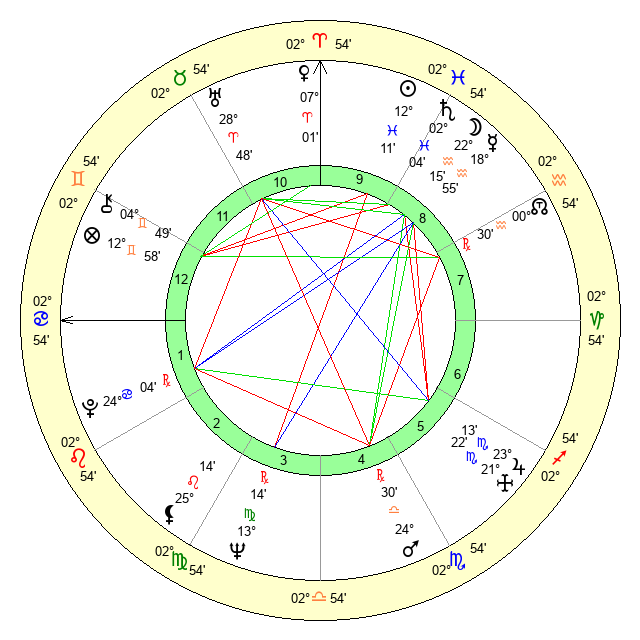 | Venus | 7 Aries 2 | 10 Aries 47 | 23 Cancer 23 |