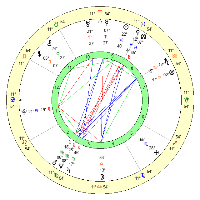 | Mars | 6 Virgo 17 | 18 Cancer 47 | 18 Virgo 17 |