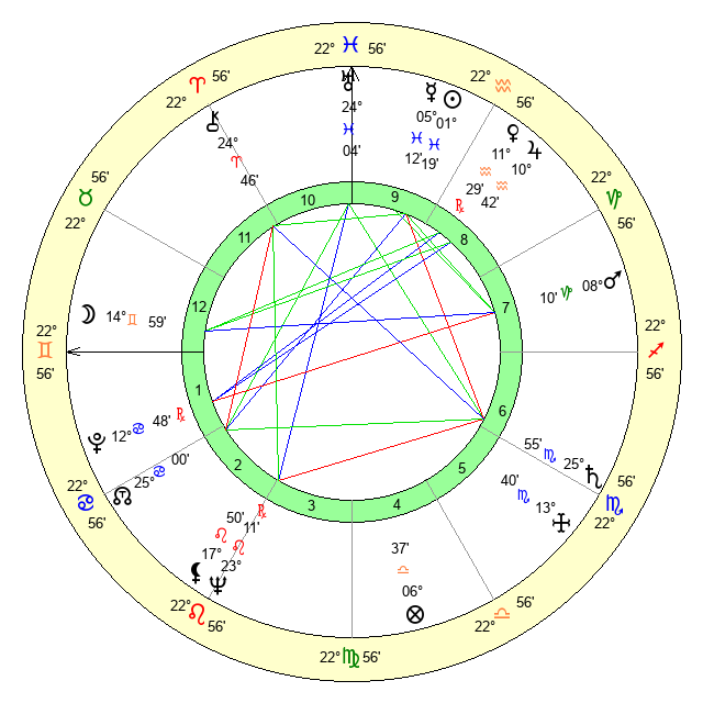 | Sun | 1 Pisces 19 | 2 Pisces 18 | 8 Gemini 30 |
