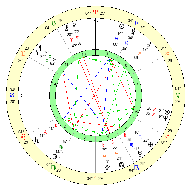 | Mars | 17 Aquarius 59 | 17 Cancer 28 | 25 Pisces 24 |