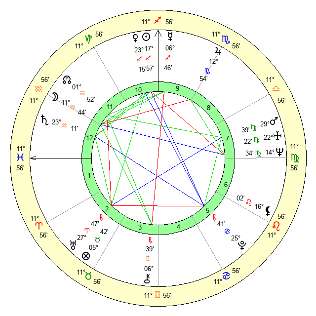 | Saturn | 23 Aquarius 20 | 25 Pisces 12 | 3 Pisces 9 |