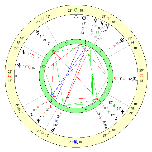 | Mercury | 27 Aries 18 | 3 Taurus 47 | 26 Leo 5 |