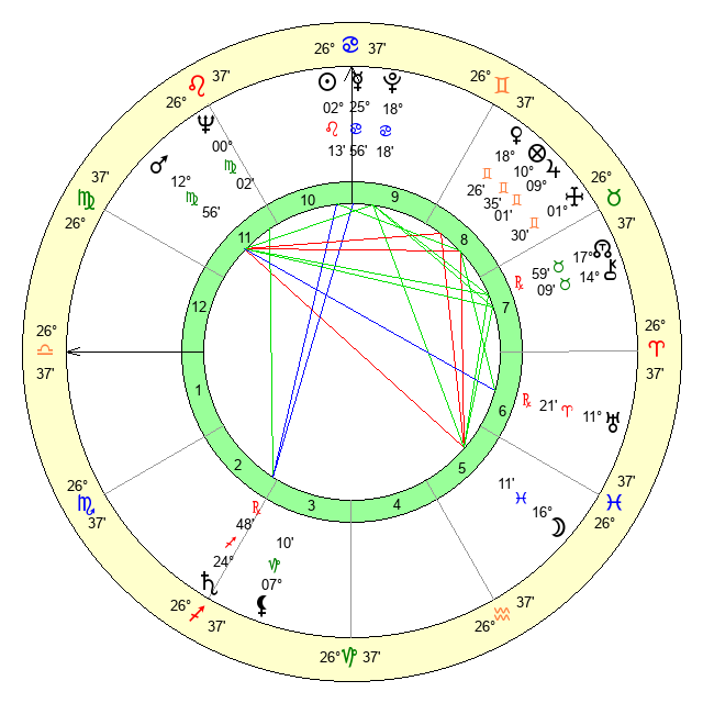 | Moon | 16 Pisces 14 | 14 Leo 26 | 1 Libra 46 |