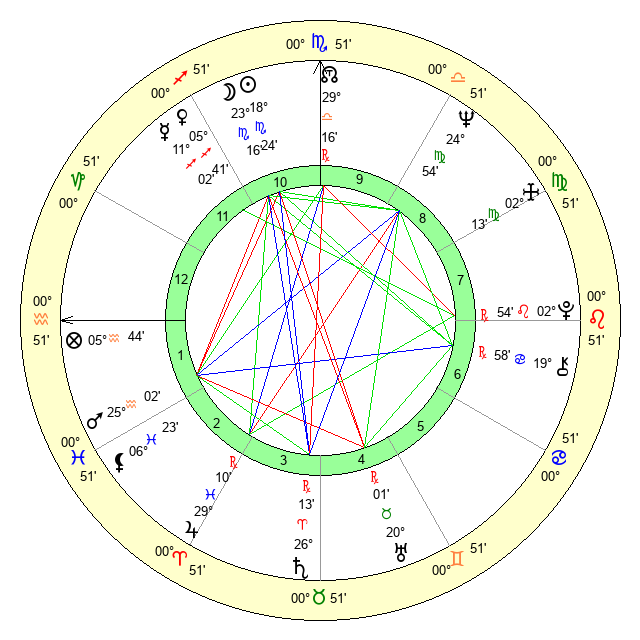 | Moon | 23 Scorpio 16 | 13 Leo 9 | 16 Capricorn 21 |