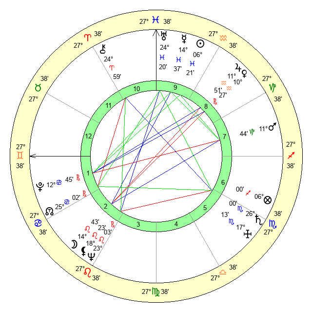| Sun | 6 Pisces 21 | 7 Pisces 20 | 13 Gemini 18 |
