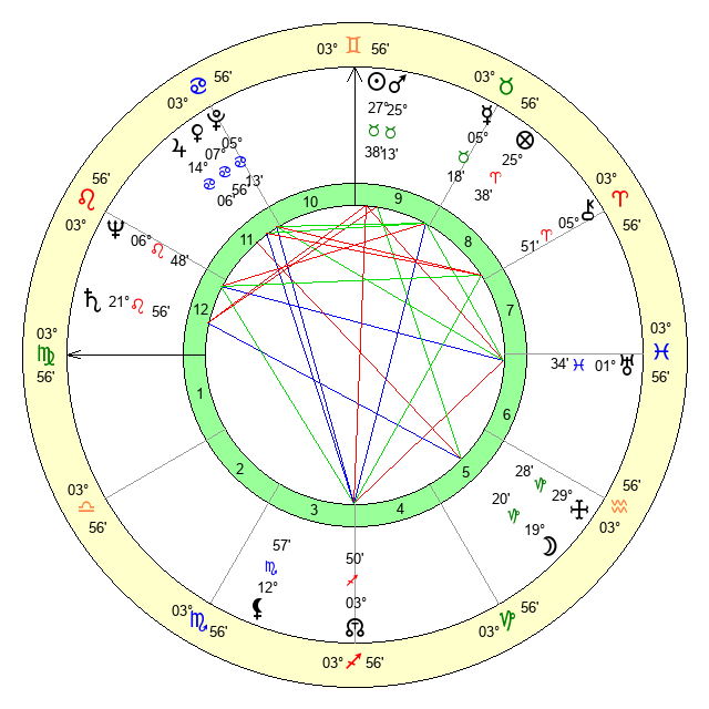 | Saturn | 22 Leo 39 | 29 Pisces 28 | 3 Virgo 19 |