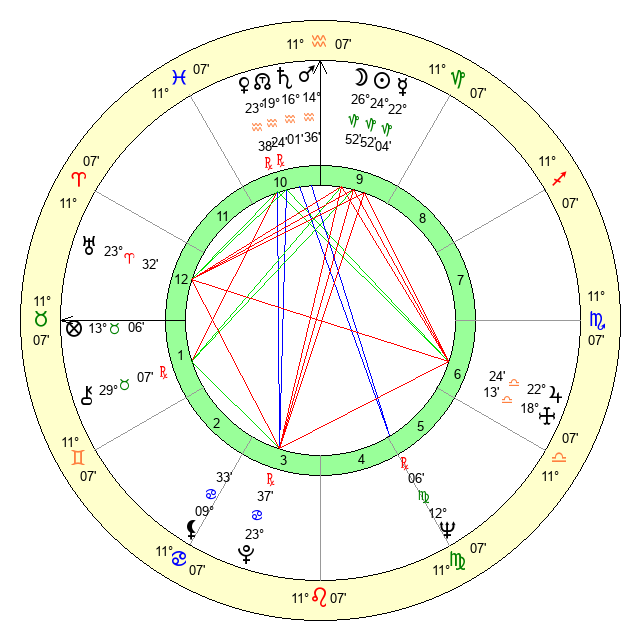 | Neptune | 12 Virgo 6 | 27 Pisces 33 | 9 Virgo 54 |