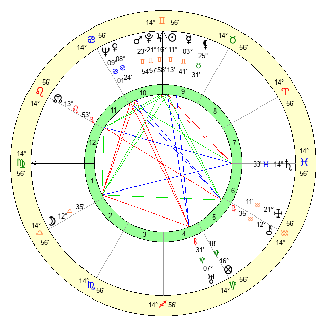 | Mars | 23 Gemini 55 | 21 Leo 58 | 10 Virgo 52 |
