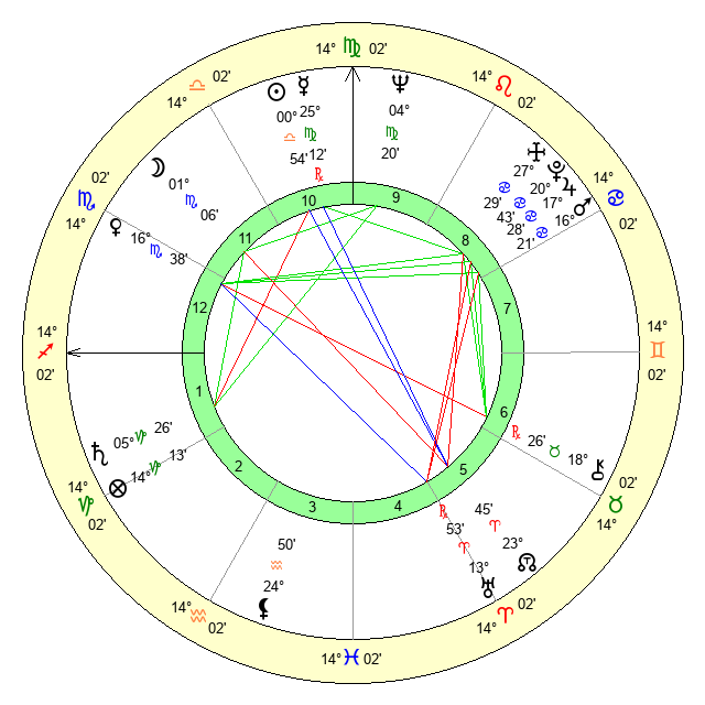 | Venus | 16 Scorpio 38 | 6 Virgo 20 | 26 Scorpio 21 |