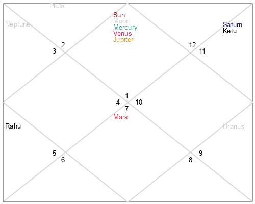 | Rahu | 5 Virgo 57 | 24 Pisces 59 | 29 Leo 36 |