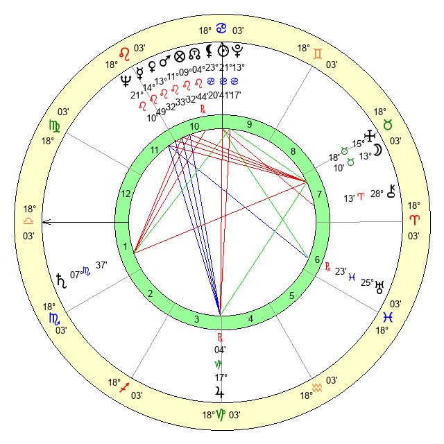 | Sun | 21 Cancer 42 | 22 Cancer 30 | 28 Libra 47 |