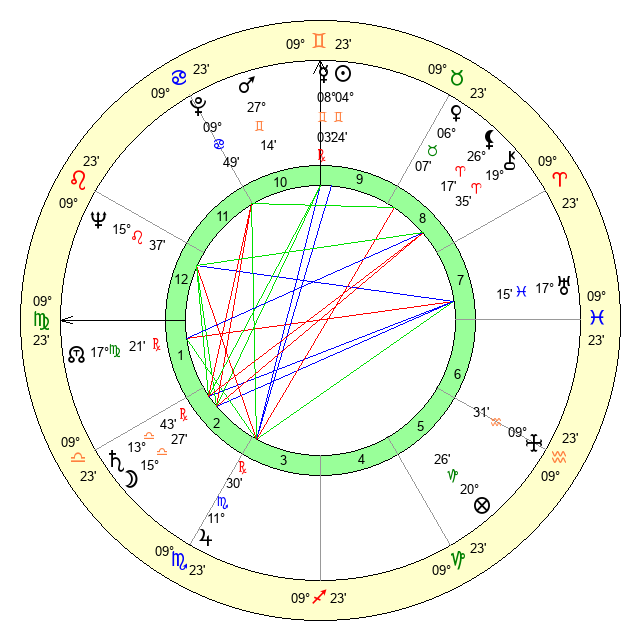 | Sun | 4 Gemini 24 | 5 Gemini 42 | 12 Virgo 5 |