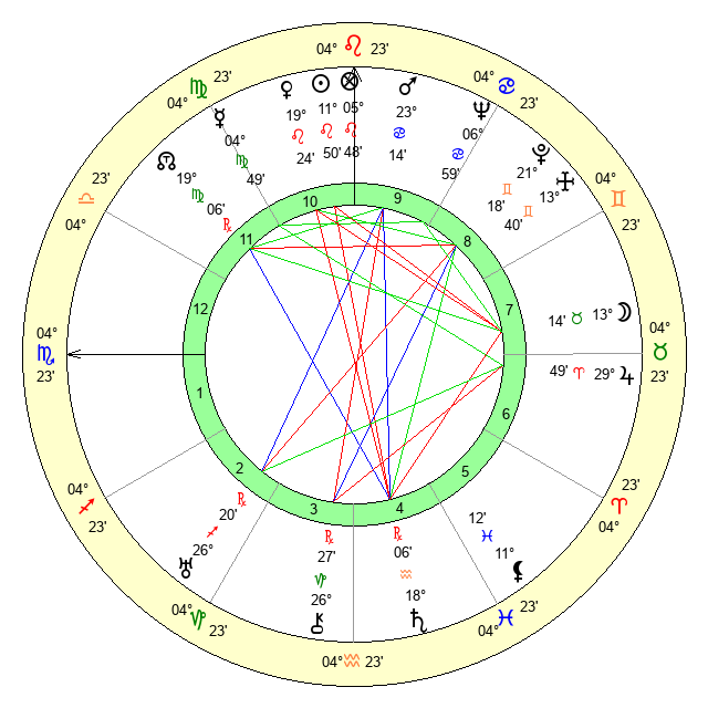 | Mars | 23 Cancer 14 | 28 Virgo 36 | 7 Libra 46 |