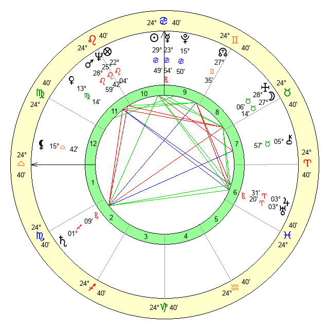 | Mars | 29 Leo 0 | 21 Virgo 14 | 2 Scorpio 30 |