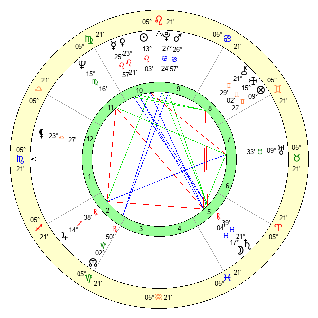 | Venus | 23 Leo 22 | 6 Cancer 26 | 12 Sagittarius 51 |