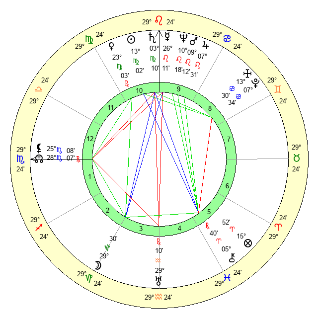 | Venus | 23 Virgo 1 | 14 Leo 26 | 14 Scorpio 6 |