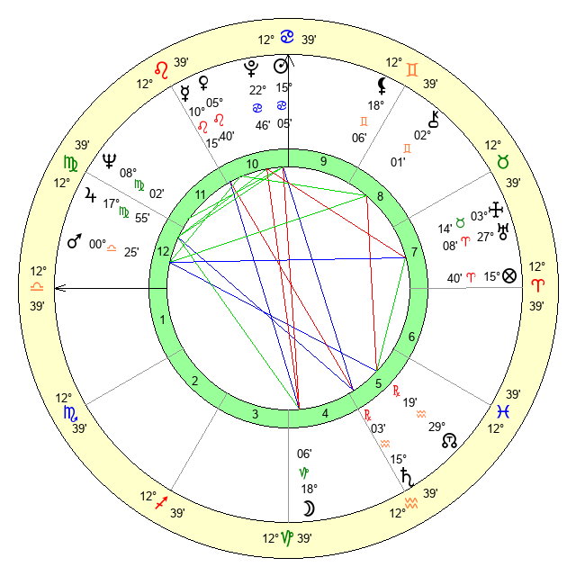 | Venus | 5 Leo 40 | 3 Gemini 23 | 25 Scorpio 57 |