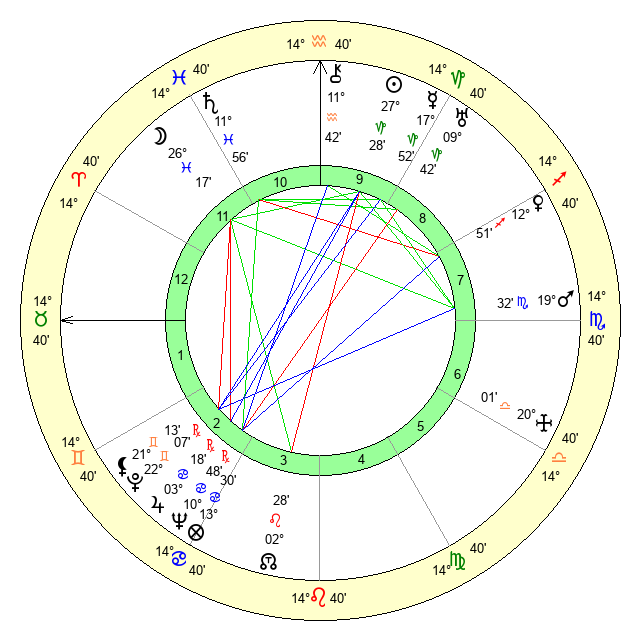 | Moon | 26 Pisces 19 | 24 Virgo 40 | 12 Cancer 19 |