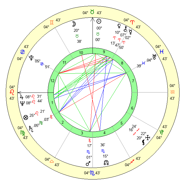 | Venus | 10 Aries 13 | 25 Pisces 40 | 19 Leo 11 |