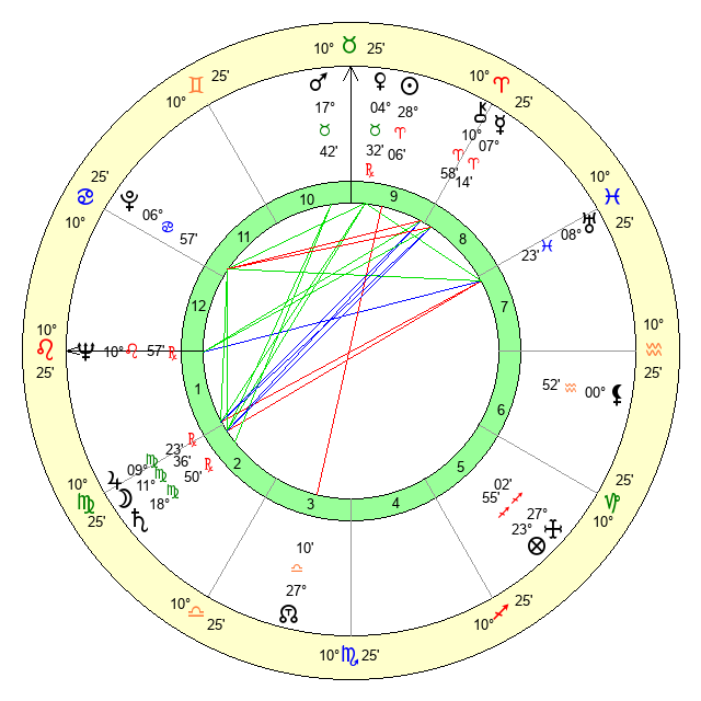 | Sun | 28 Aries 6 | 28 Aries 54 | 7 Leo 54 |