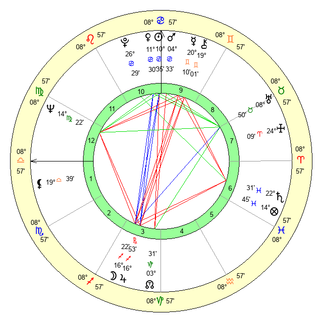| Sun | 10 Cancer 35 | 11 Cancer 4 | 6 Libra 21 |