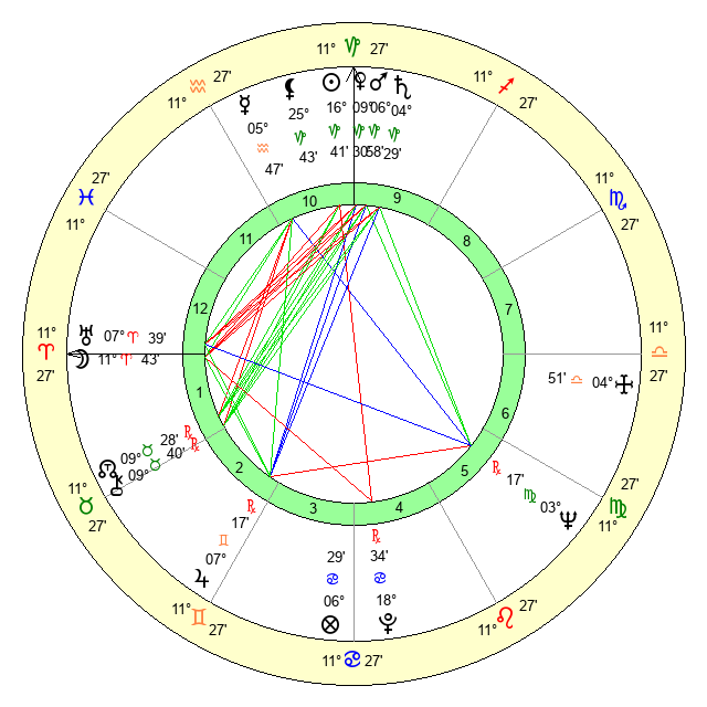 | Moon | 11 Aries 45 | 27 Aries 1 | 15 Libra 8 |