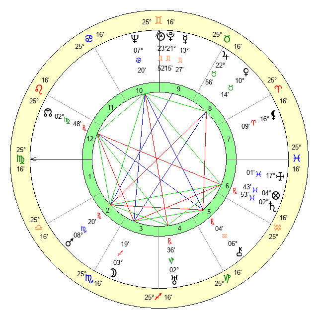 | Sun | 23 Gemini 53 | 24 Gemini 50 | 19 Libra 41 |