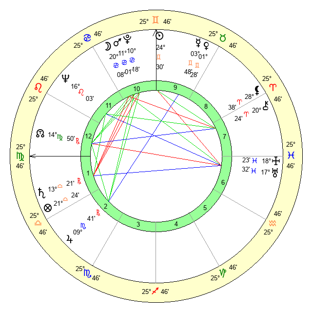 | Sun | 24 Gemini 30 | 25 Gemini 48 | 2 Libra 34 |