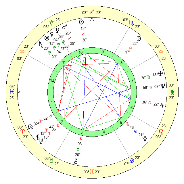 | Neptune | 7 Virgo 59 | 29 Pisces 22 | 6 Virgo 18 |