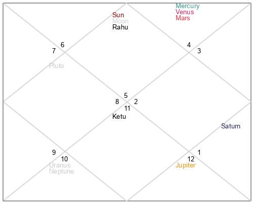 | Ketu | 1 Pisces 24 | 19 Virgo 10 | 29 Aquarius 58 |