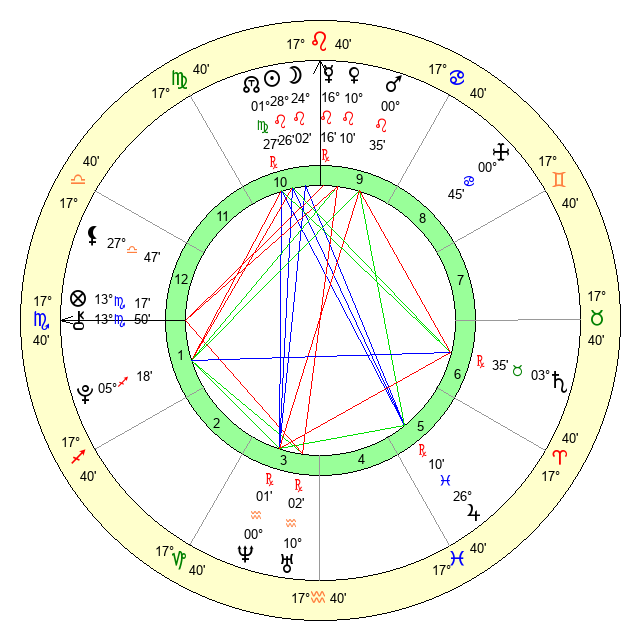 | Sun | 28 Leo 26 | 28 Leo 53 | 24 Virgo 36 |